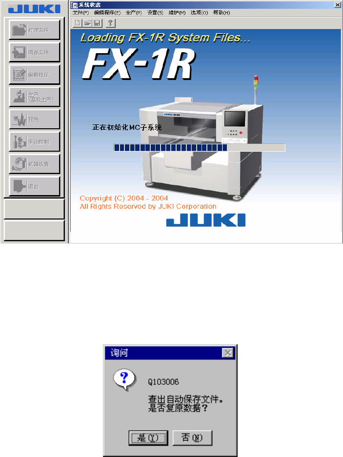 若是上次系统运行时因生产中系统异常而结束生产时,会有下图询问显示,