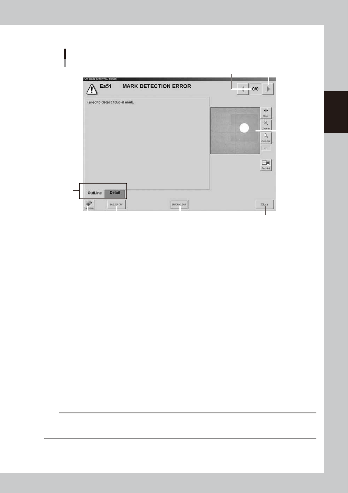 closing the error screen by pressing the [Close] button. Pressing the [Error Detail] button on the [Production] screen