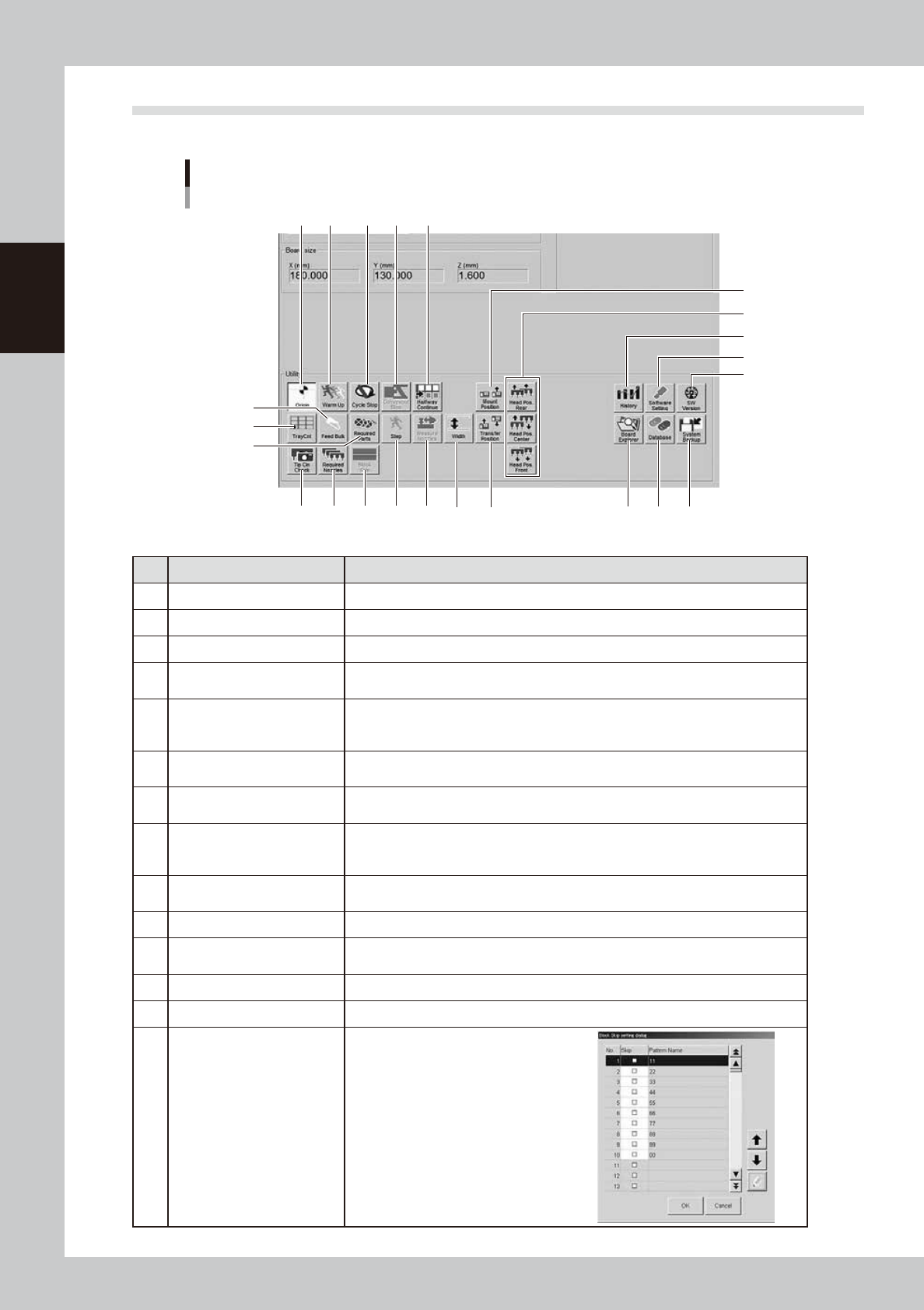 2-12 2 Basic operation 2.2 Setup screen T his section describes the operation buttons display ed on the "Setup" screen. 18 19 20 23 22 21 3 4 9 10 11 16 8 12 7 6 15 17 5 1 2 13 14 Setup screen 24203-KMK-00 Butt…