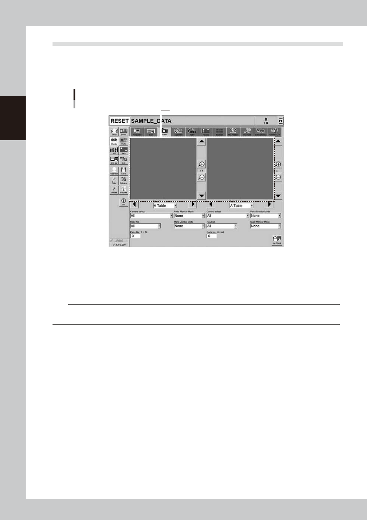 An image is displayed on each left and right of the vision monitor. Select a table, a camera, a head and a part