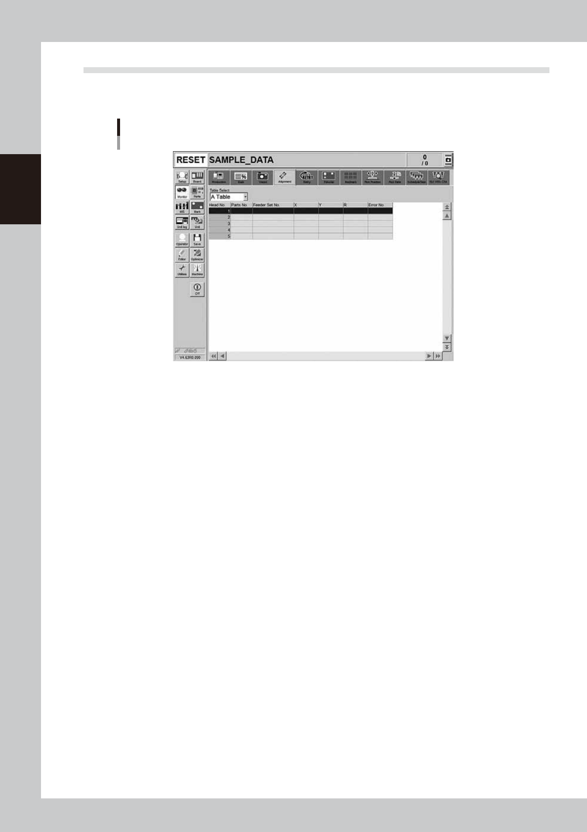 This screen shows a list of the mounting position correction amount following up on component recognition