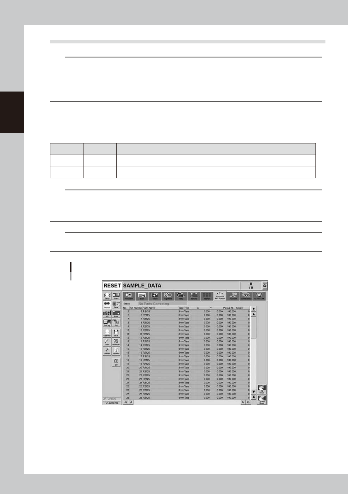 2-33 2 Basic operation • T ape T ype T he T ape T ype shows the type of tape when the mac hine processes component tapes. It shows the method of supplying components when processing tra y components. • X (mm), Y (mm) Dis…