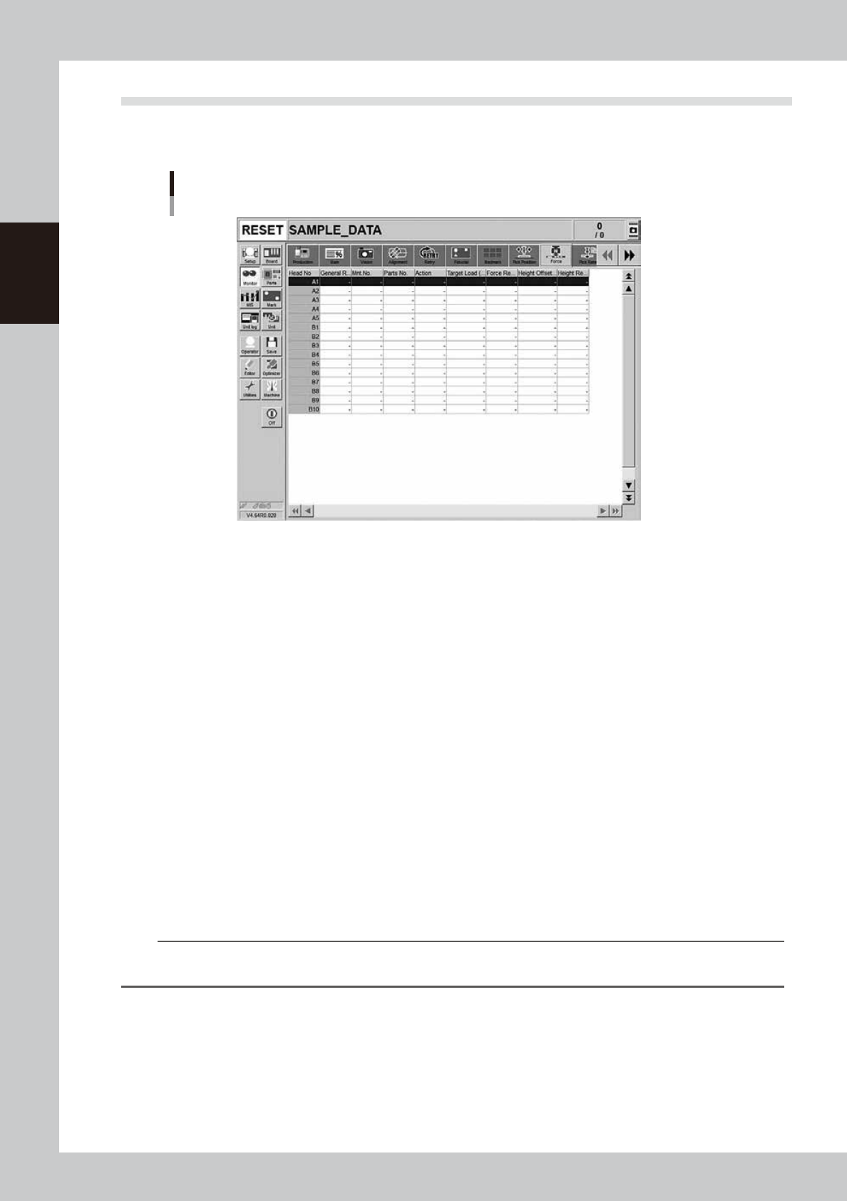 2-34 2 Basic operation 3.9 Force T his screen is displayed w hen the machine is equipped with a FM head. T his screen shows the results at real-time when using the for ce control. Monitor: Force 24233-KMK-00 • Head No. D…
