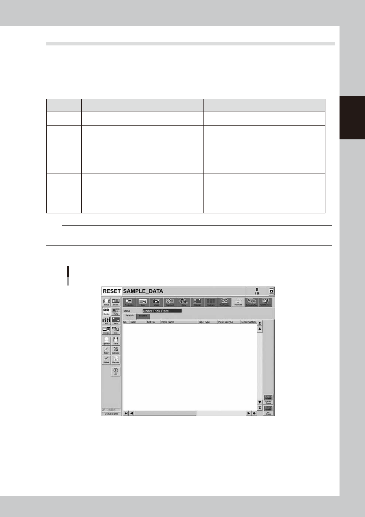 This screen appears when using the pickup rate warning function. When clicking the tab to switch the display,