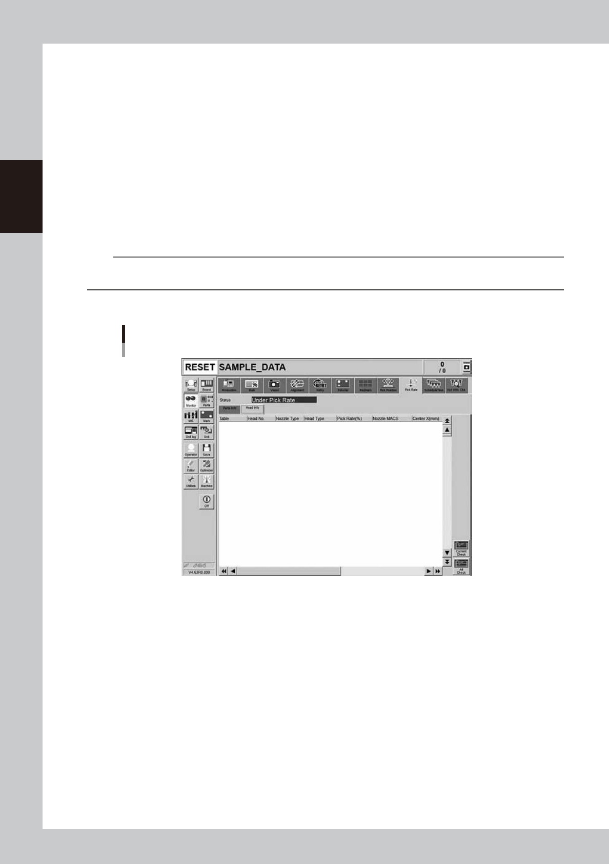 2-35 2 Basic operation 3.10 Pick Rate W ar ning T his screen appears when using the pickup rate w arning function. When clic king the tab to switch the displa y , the screen allows c hecking for a drop in the component p…