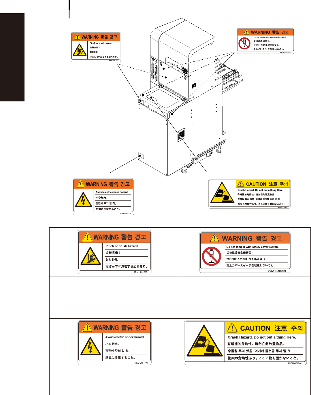 xii Safety instructions n Label positions of sA TS30NS W arning/caution labels sA TS30NS ■ Inside of door/cover ■ Base cover ■ Door opening ■ T op of pallet station door 93016-KMK-00 · Hands or fingers might be caught be…