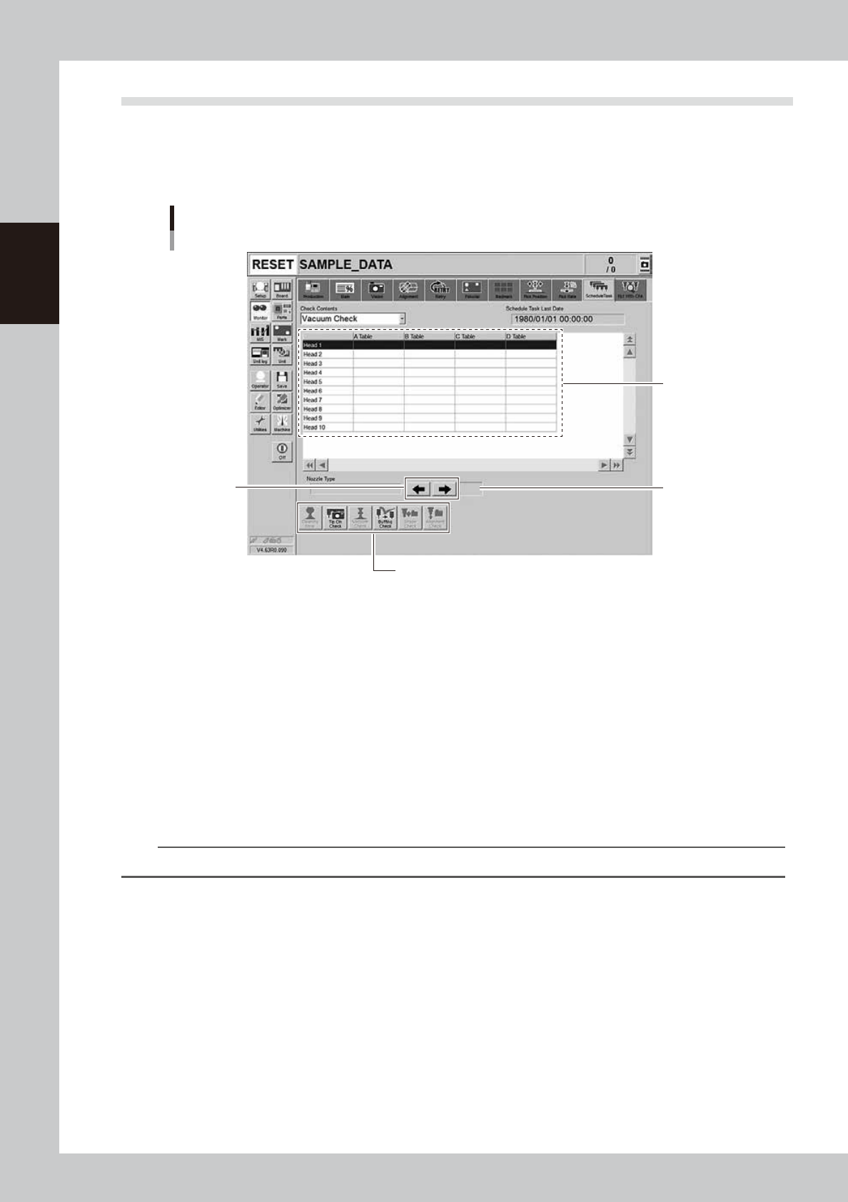 When executing the schedule tasks such as the “Vacuum Check” or the “Nozzle Tip Cleanliness Check”, this