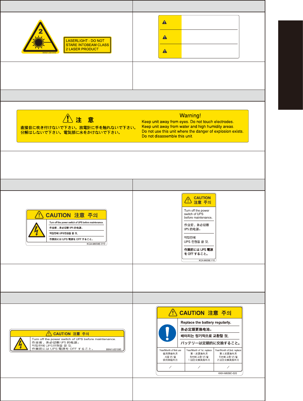 Always turn off UPS switch when performing maintenance work Periodically replace USP battery since it has a limited service life.