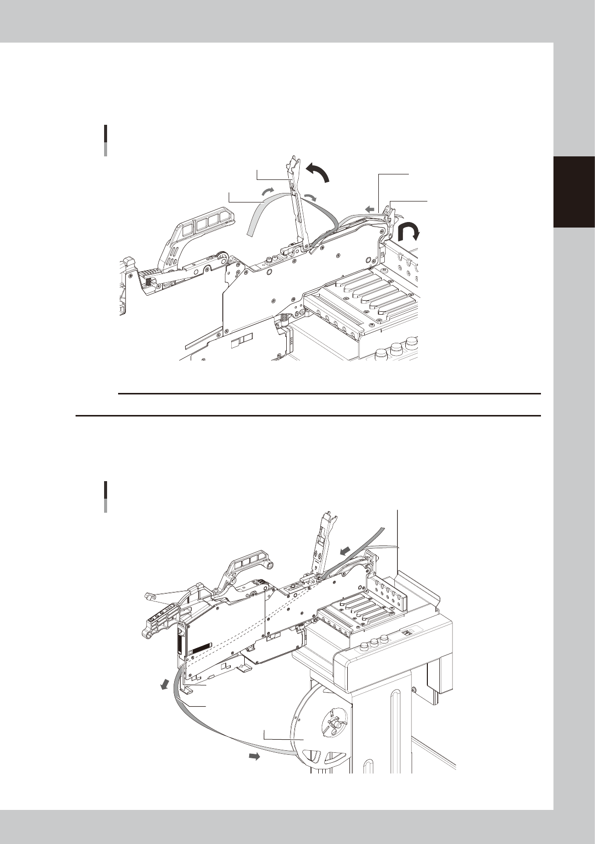 3. Pull out the carrier tape from the tape guide front lever.
