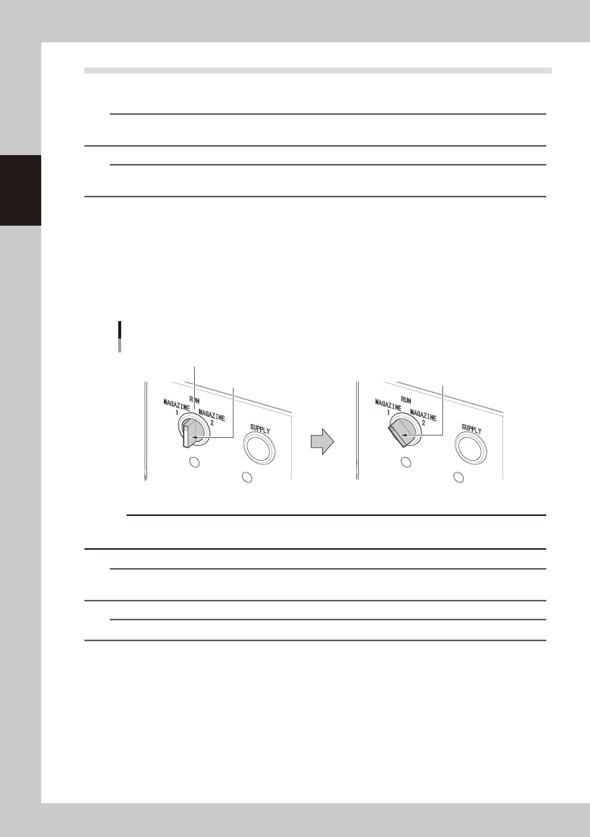1 or 2. When the magazine exchange switch is turned to one side, the selected magazine moves to the