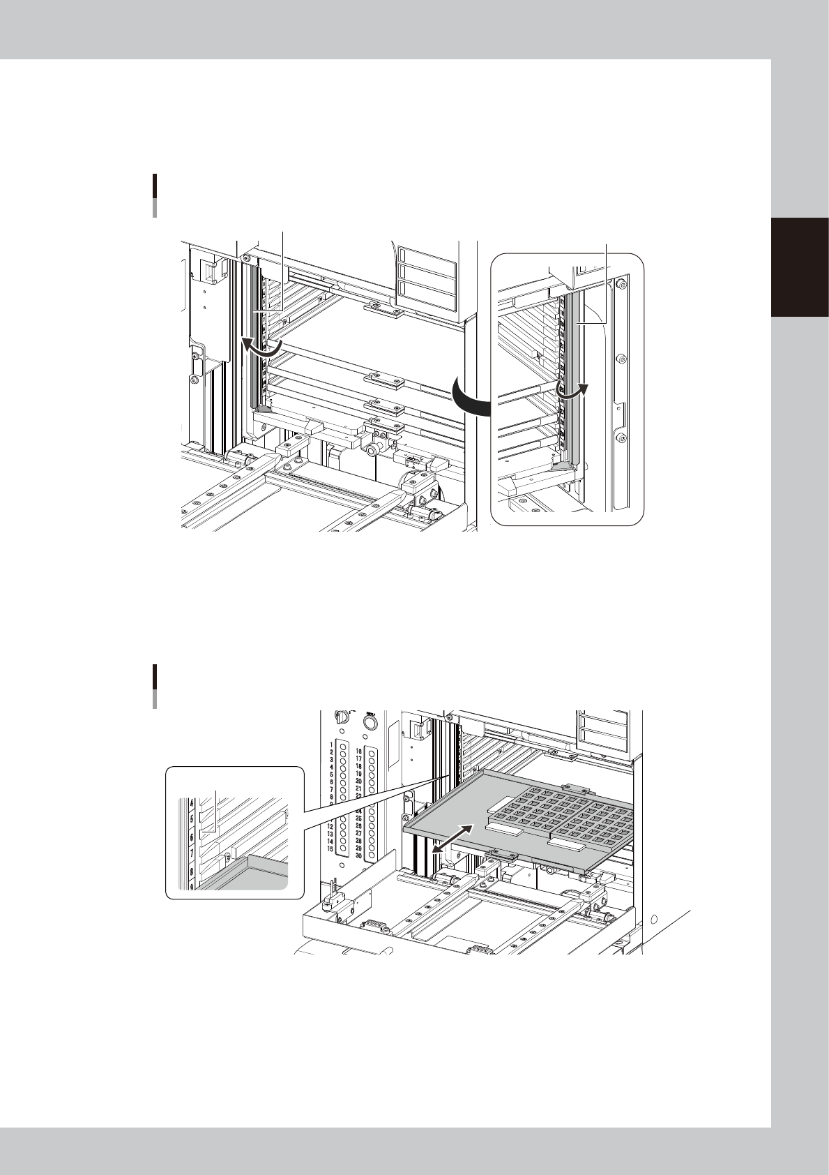 2-83 2 Basic operation 3 Open the magazine door . 4 Open the latch. Open the latch on both sides of the magazine by hands. Opening the latch. Latch Latch 23245-KMK-00 5 Ex change the pallet. 1. Pull out the pallet to be …