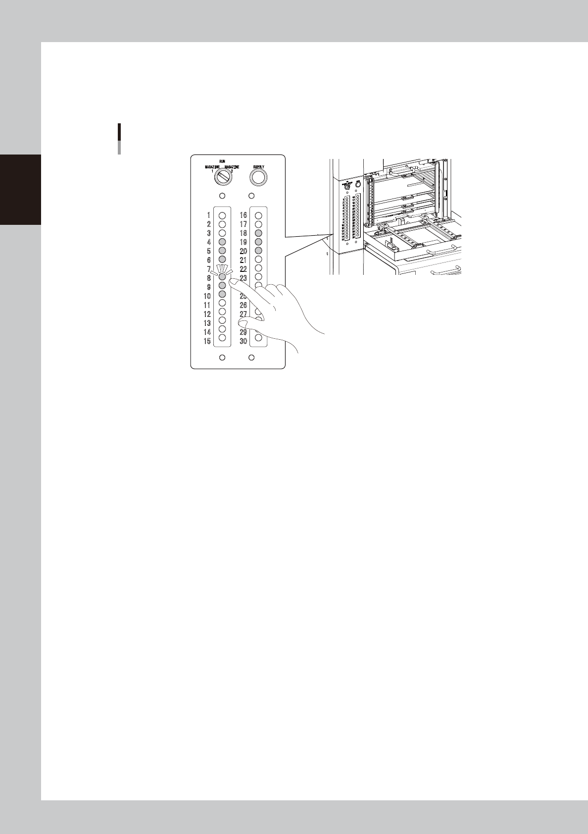 Turn the magazine exchange switch back to "RUN".