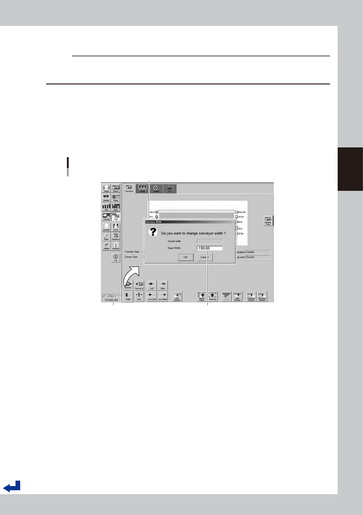 “Target Width”. Confirm the conveyor width is correct and Press the [OK] button. The conveyor unit