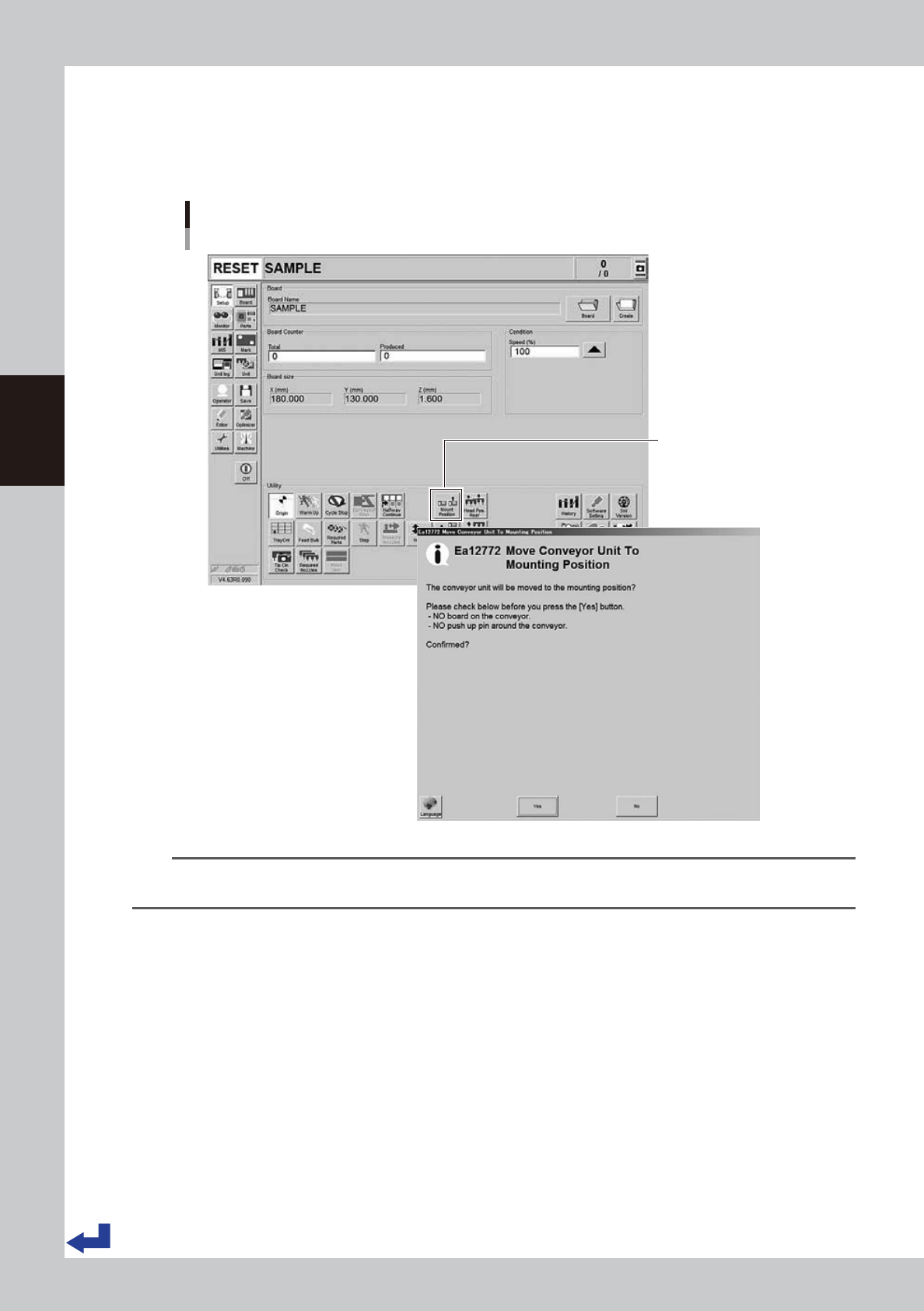 2. The message "Move Conveyor Unit To Mounting Position" is displayed, and then press [Yes].