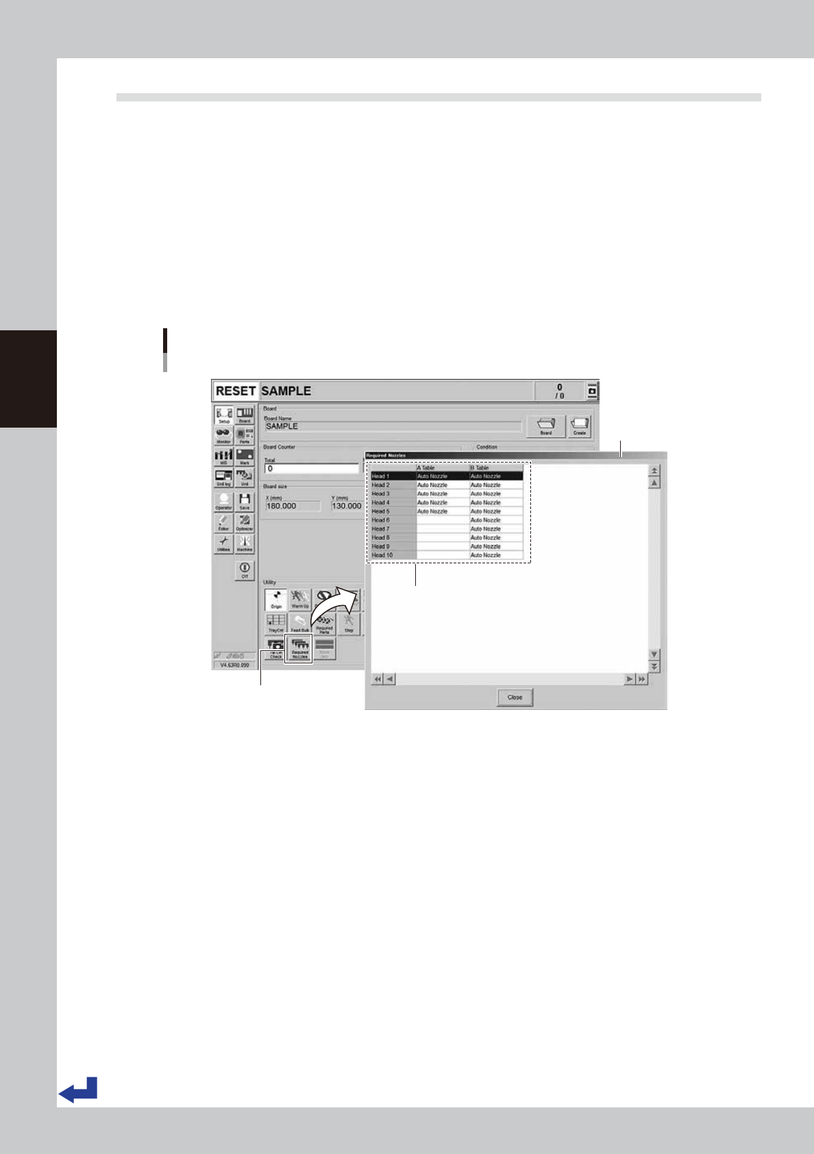 [Setup] screen - “Required Nozzles” screen