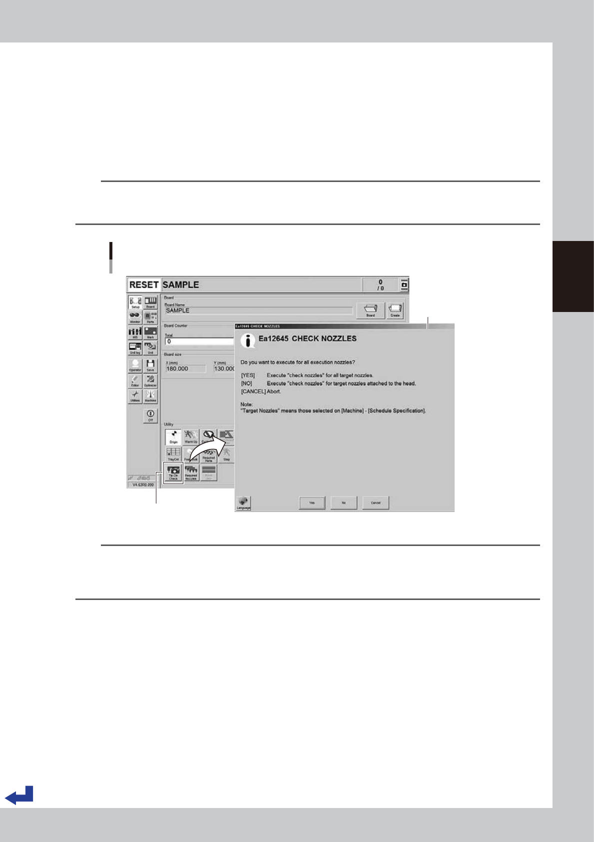 [Setup] - “CHECK NOZZLES” screen