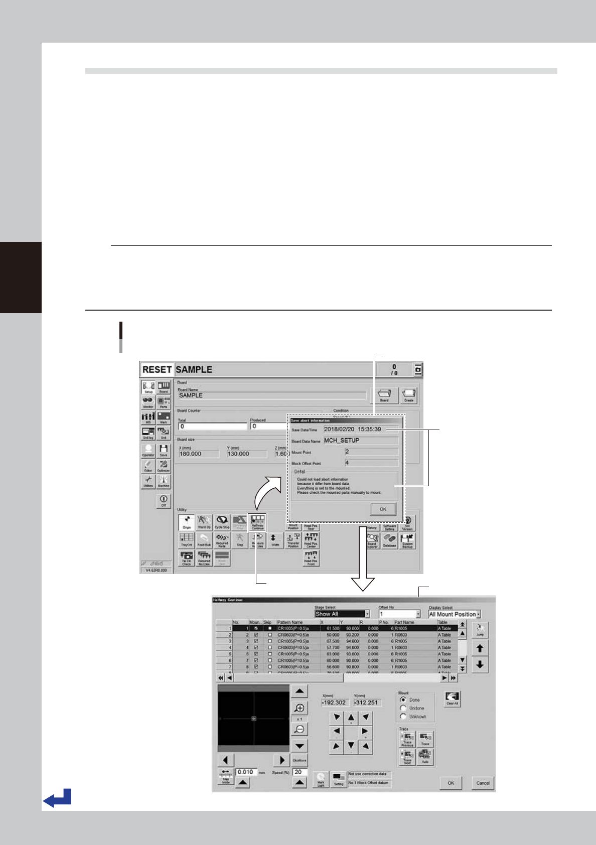 the [OK] button to open the “CONFIRMATION OF BOARD FIX” screen and then open the “Halfway
