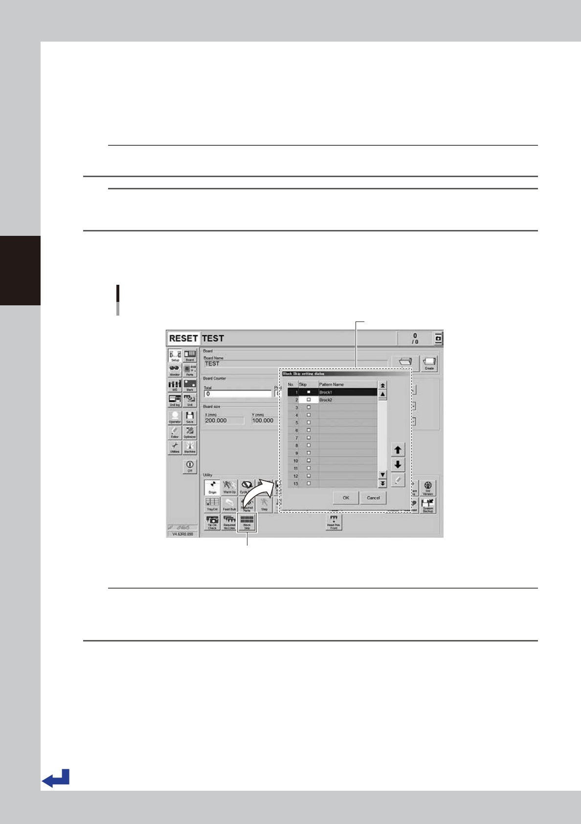 [Setup] screen - "Block Skip setting dialog”