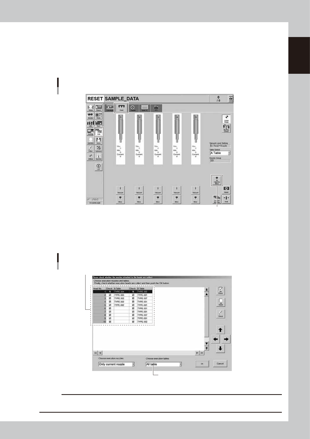 Open the [Unit] – [Head] screen.