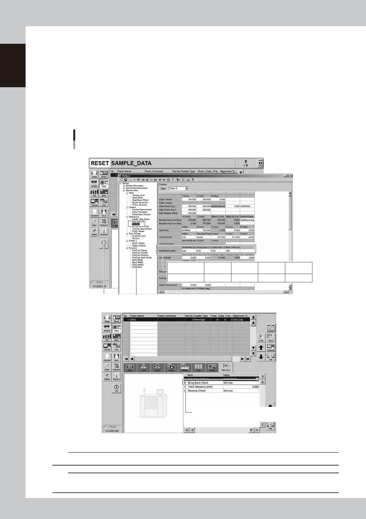 2. The function of the shaft blow dump is set "Use" in "Machine Data"-"Mechanical"-"Position" and "Dump