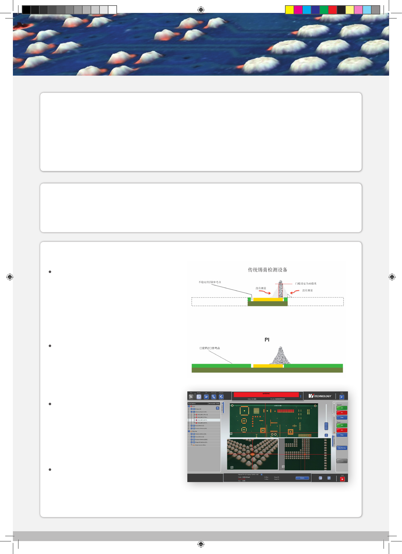 检测毫不费力 让机器自己编程 仅仅需要一个光板,就可以确保准确地测 量,然后让机器自己编程。 因为是自动编程,程序完成以后不再需要调 试。表现一如既往,无关于色彩和其他过程 变量。因此,Pi完美地应用于新产品导入。 Pi是唯一的自动编程的锡膏检测设备 自动编程使高质量的检测不依赖于程序员的技能水平。 除了锡膏检测,Pi同时能进行红胶检测。 Brochure PI BAT_CN Rev2 12-2017.indd 3 26/03/2018…