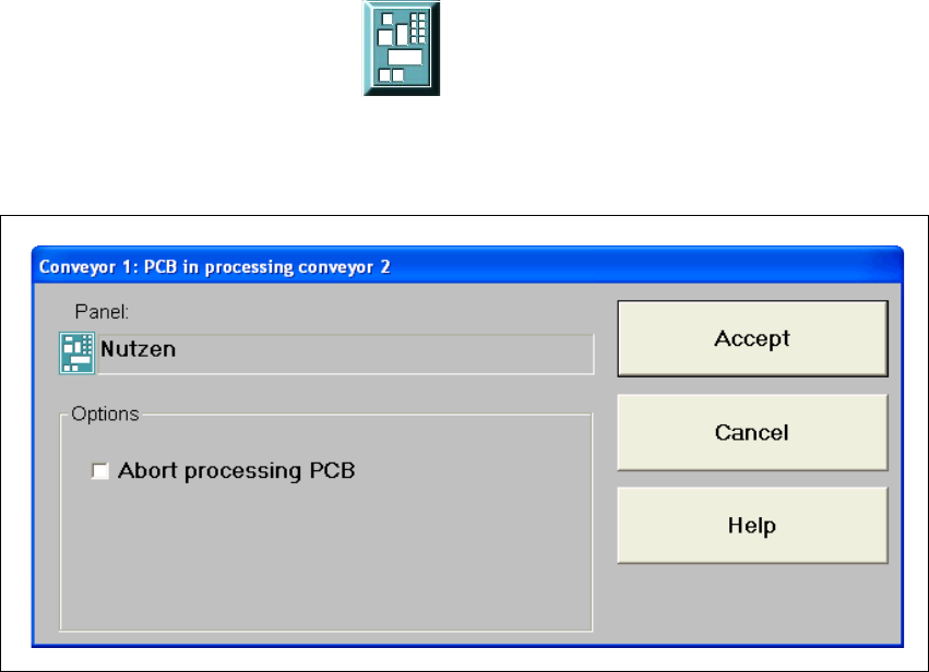 If the PCB is located on the processing conveyor, the following dialog box is opened.