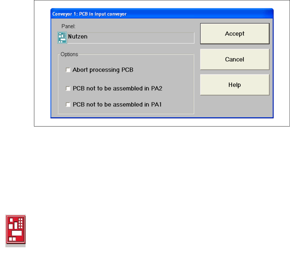 If the PCB is located on the input conveyor, the following dialog box is opened. 3