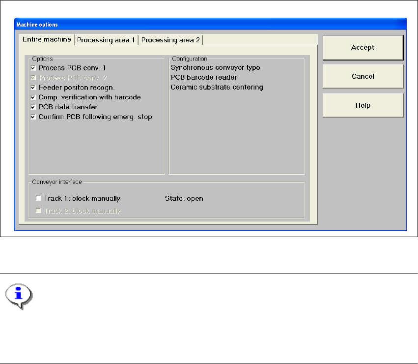 Fig. 3.3 - 5 "Machine options - Processing area 1" dialog box (Example: HF)