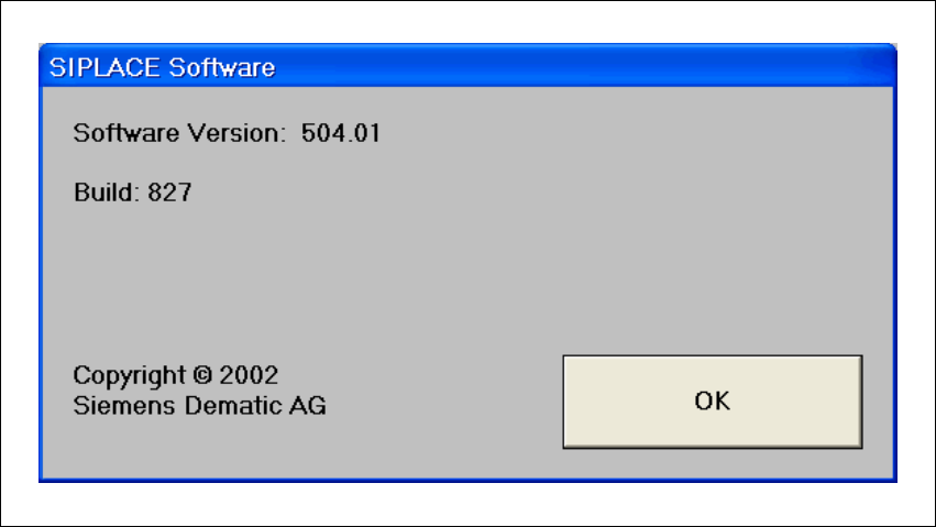 SIPLACE S oftware Guide SR.504.xx 6 Online Help system Issue 01/03 E N 6.1 General 65 6.1.1.4 Calling general st ation computer informat ion Å In the Help menu, click the Info... it em. The following window is opened. Fi…