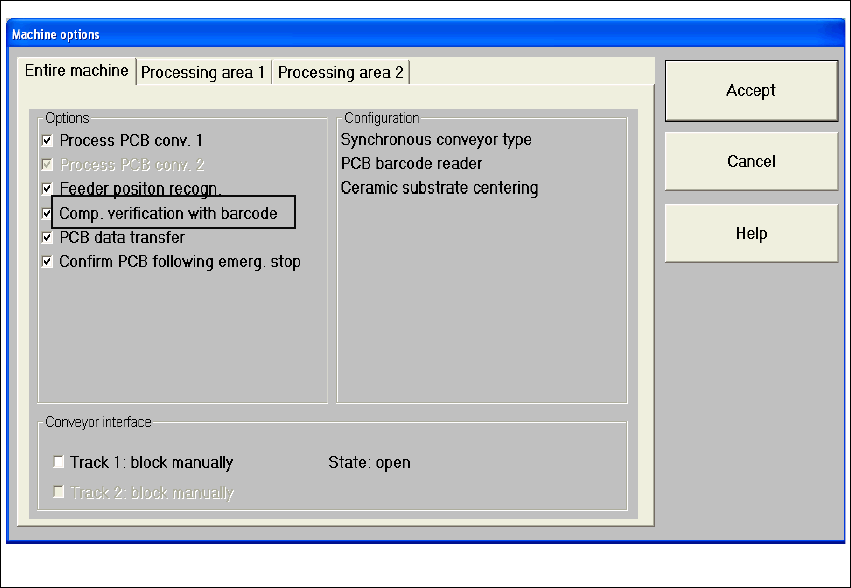 Fig. 7.6 - 1 Dialog: Machine options – Comp. verfication with Barcode