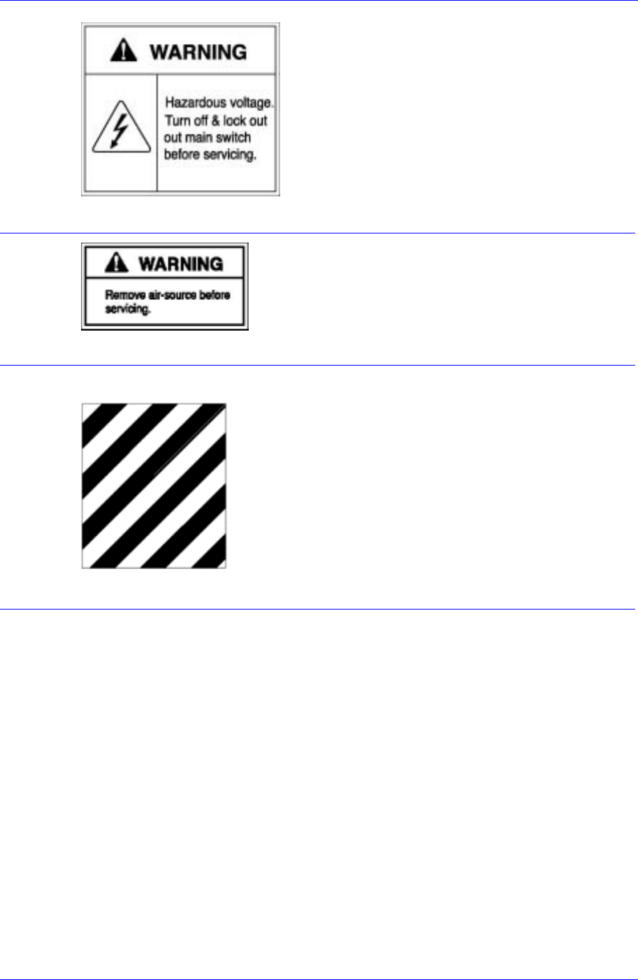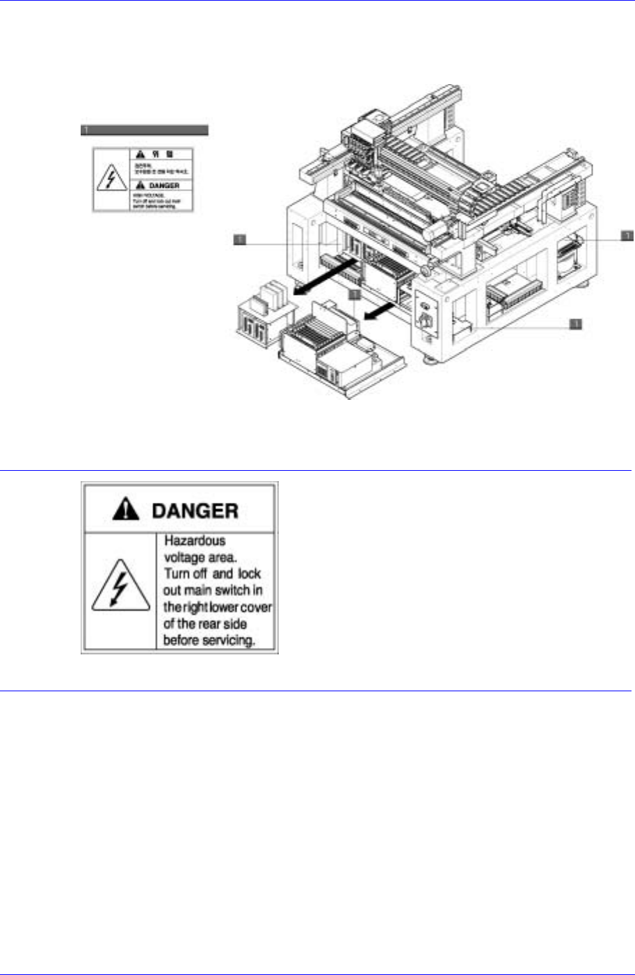 Pr eface vii  Internal Part of the Machine The following labels are attached on th e internal part of this machine. Figur e 0-3. Safety labels attached on the internal part of the machine Where this label is attached is…