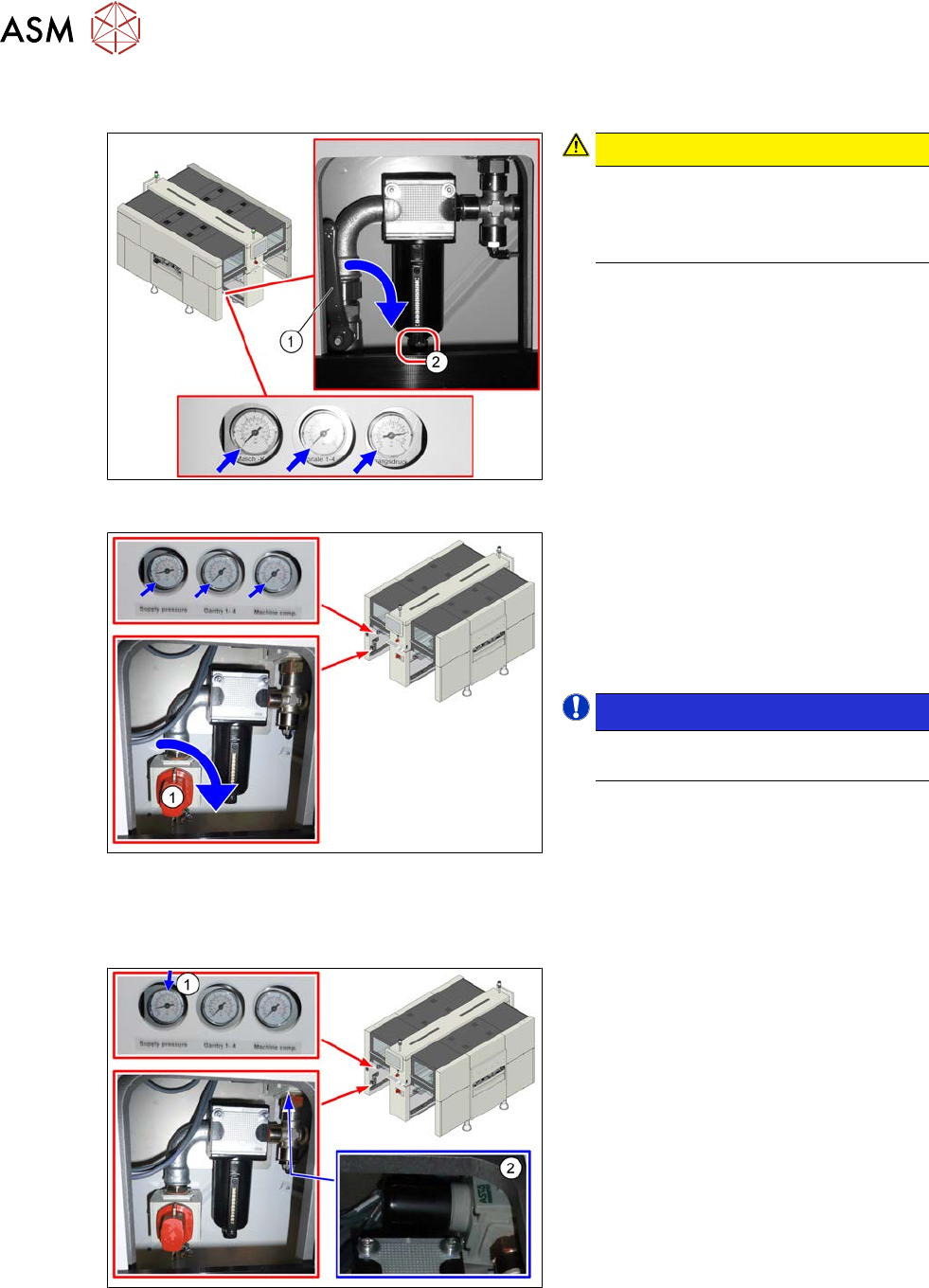 5 Pneumatik 5.2 Druckluftzufuhr sperren 136 Serviceanleitung SIPLACE X-Serie S 06/2019 5.2 Druckluftzufuhr sperren Abb.162: Druckluftzufuhr sperren (Version 1) VORSICHT! Druckluftversorgung abschalten Die Druckluftver…