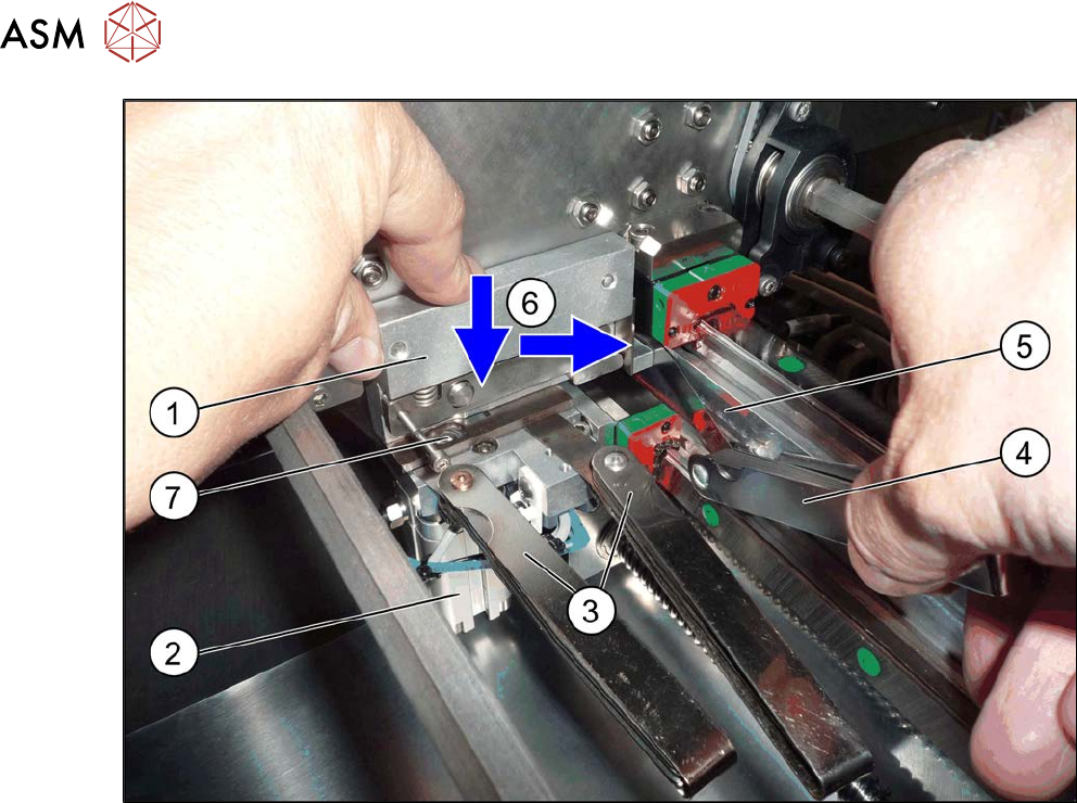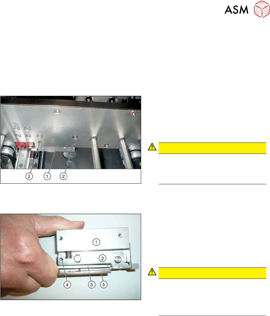 7 Transport 7.5 Breitenverstellung, Klemmung und Zylindereinheit Serviceanleitung SIPLACE X-Serie S 06/2019 243 Ausbau ► Fahren Sie die Transportwangen mit der Software in eine geeignete Arbeitsposition. Die Wange muss f…