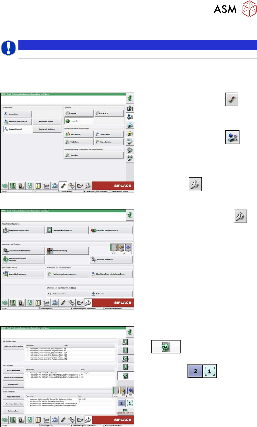 7 Transport 7.5 Breitenverstellung, Klemmung und Zylindereinheit Serviceanleitung SIPLACE X-Serie S 06/2019 249 7.5.13 Verstelleinheit kalibrieren HINWEIS Dieses Kapitel gilt nur für Maschinen mit Doppeltransport (DT). N…