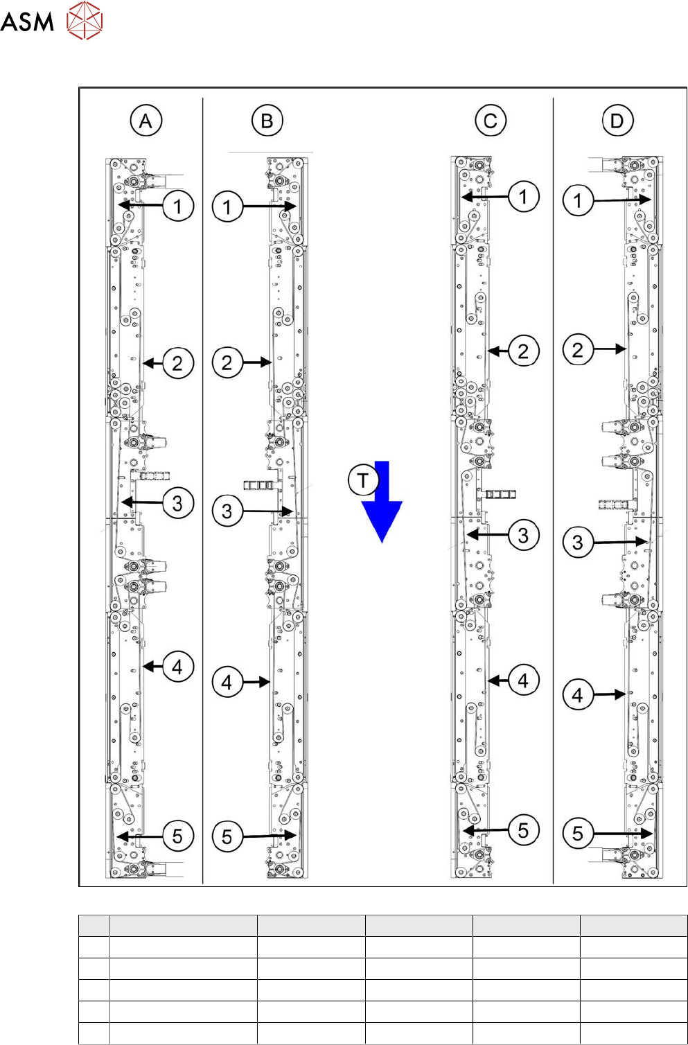 7 Transport 7.6 Transportband, Bandantrieb und Sechskantwelle 252 Serviceanleitung SIPLACE X-Serie S 06/2019 Übersicht Messstellen und –werte Abb.317: Übersicht Messstellen und –werte Wange Wange A Wange B Wange C Wange…