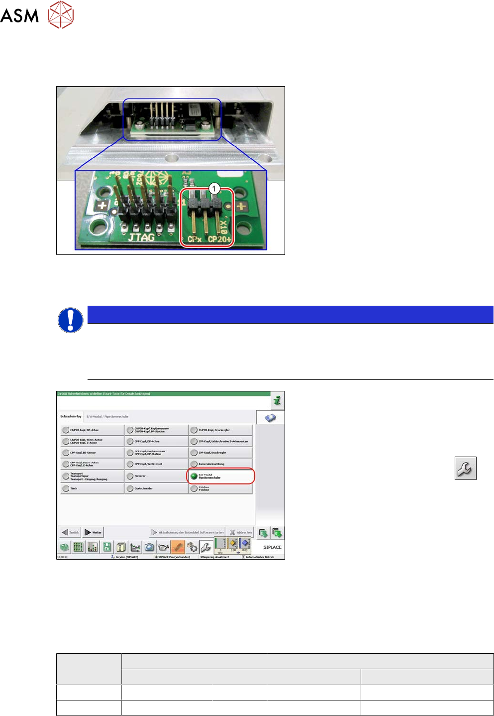 ► Wird der neue Pipettenwechsler als Ersatzteil in eine Maschine mit EA-Modul-Ansteu-