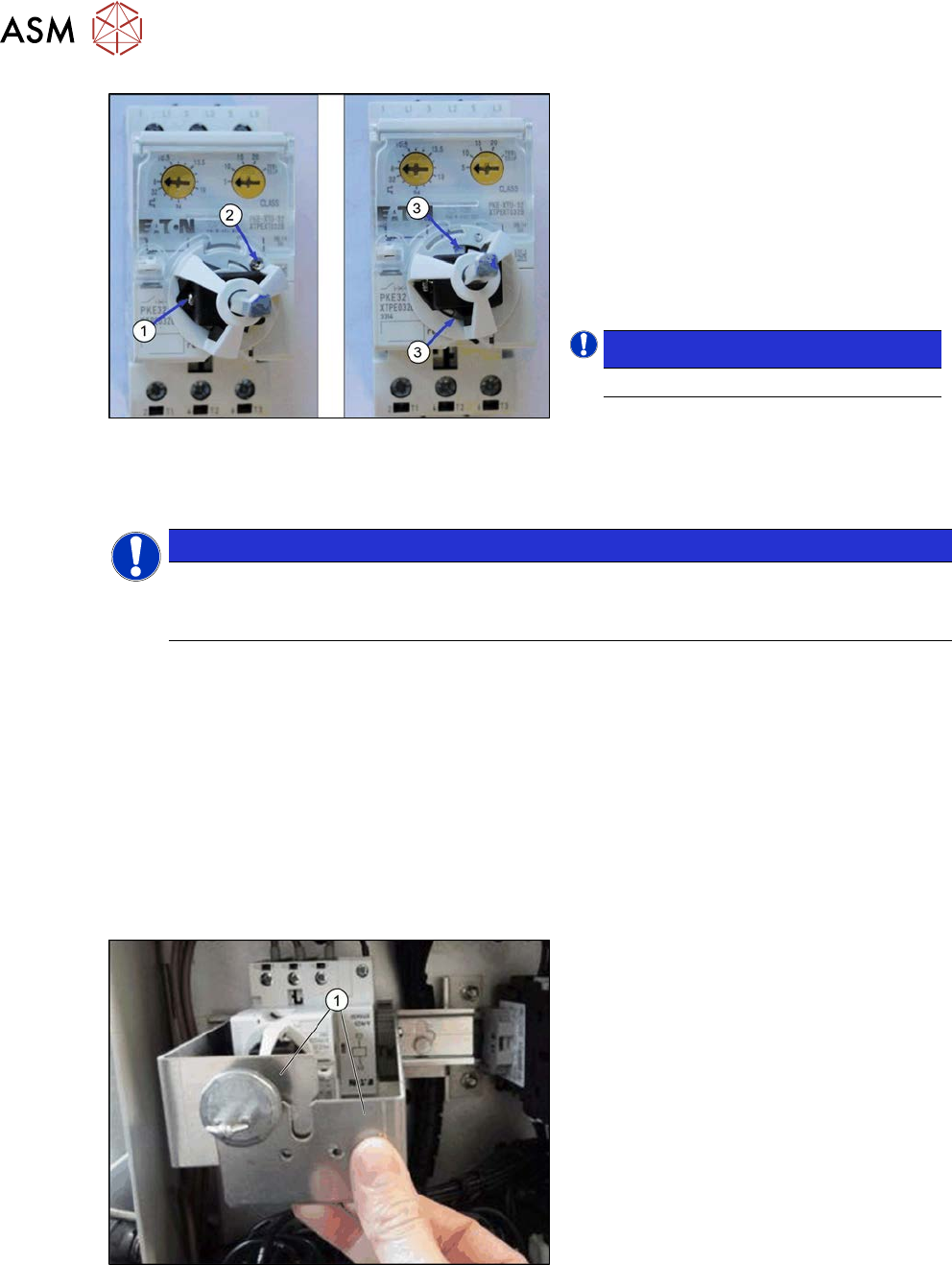 ► Fixieren Sie die Achsstütze mit der beiliegenden Schraube(3) auf dem Motorschutzschalter.