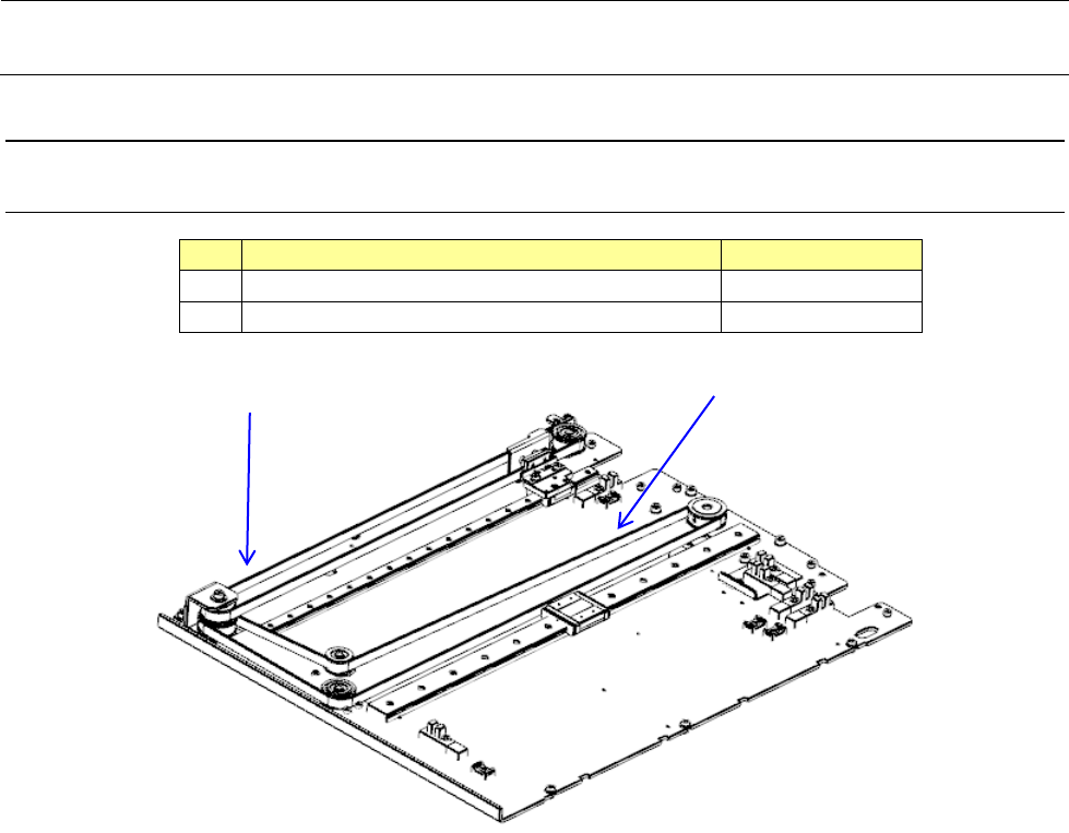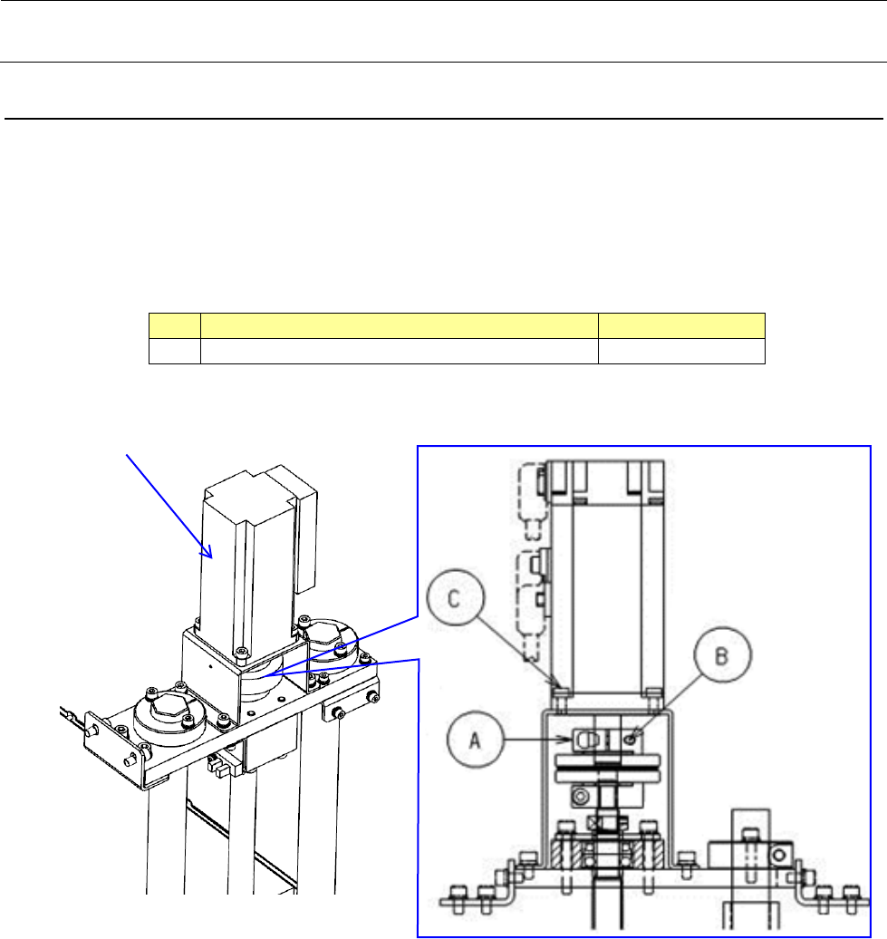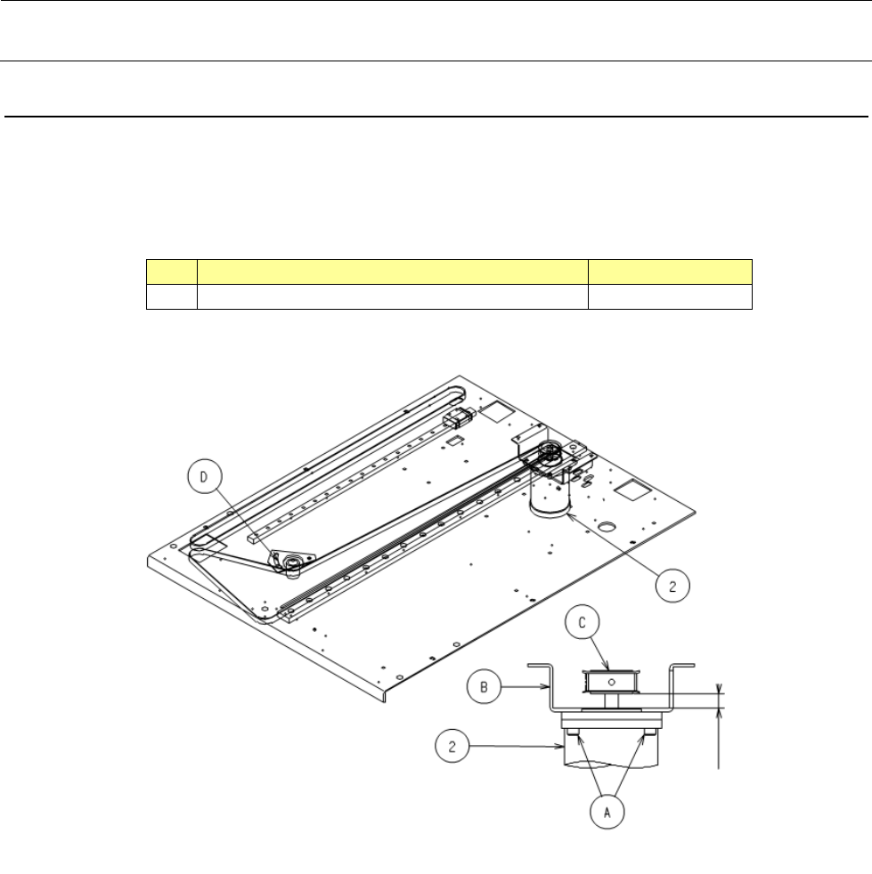 Rev 1.0 维修调整要领书 5- 3. Y 轴电动机的更换 1) 请利用张紧器 ( D ) 松缓皮带张力 。 2) 请拆下 Y 电动机安装螺丝 ( A ),更换电动机 。 3) 请调整到电动机与皮带轮 ( C ) 的空隙成为 6 .2mm 。 4) 更换电动机后 , 请进行皮带张力调整 。 品名 货号 ② Y 电动机 40045060 6.2mm 5-3