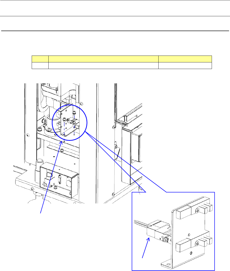Rev 1.0 维修调整要领书 7- 9. 箱门锁定部气缸的更换 请 拆下 SIDE_COVER 、 PCB_COVER ,将 ST_GUIDE_LOCK_UNIT _BR 从框架部拆下, 更 换 气缸①。 组装时, 气缸螺母 (C) 与气缸活塞杆部要拉平。 ※组 装在气缸上的速度控制器要从全开状 态 朝关 闭 方向 转 一圈,在此状 态 下予 以固定。 品名 货号 ① 门锁定用气缸( AIR CYLINDER) PA1001524A0…