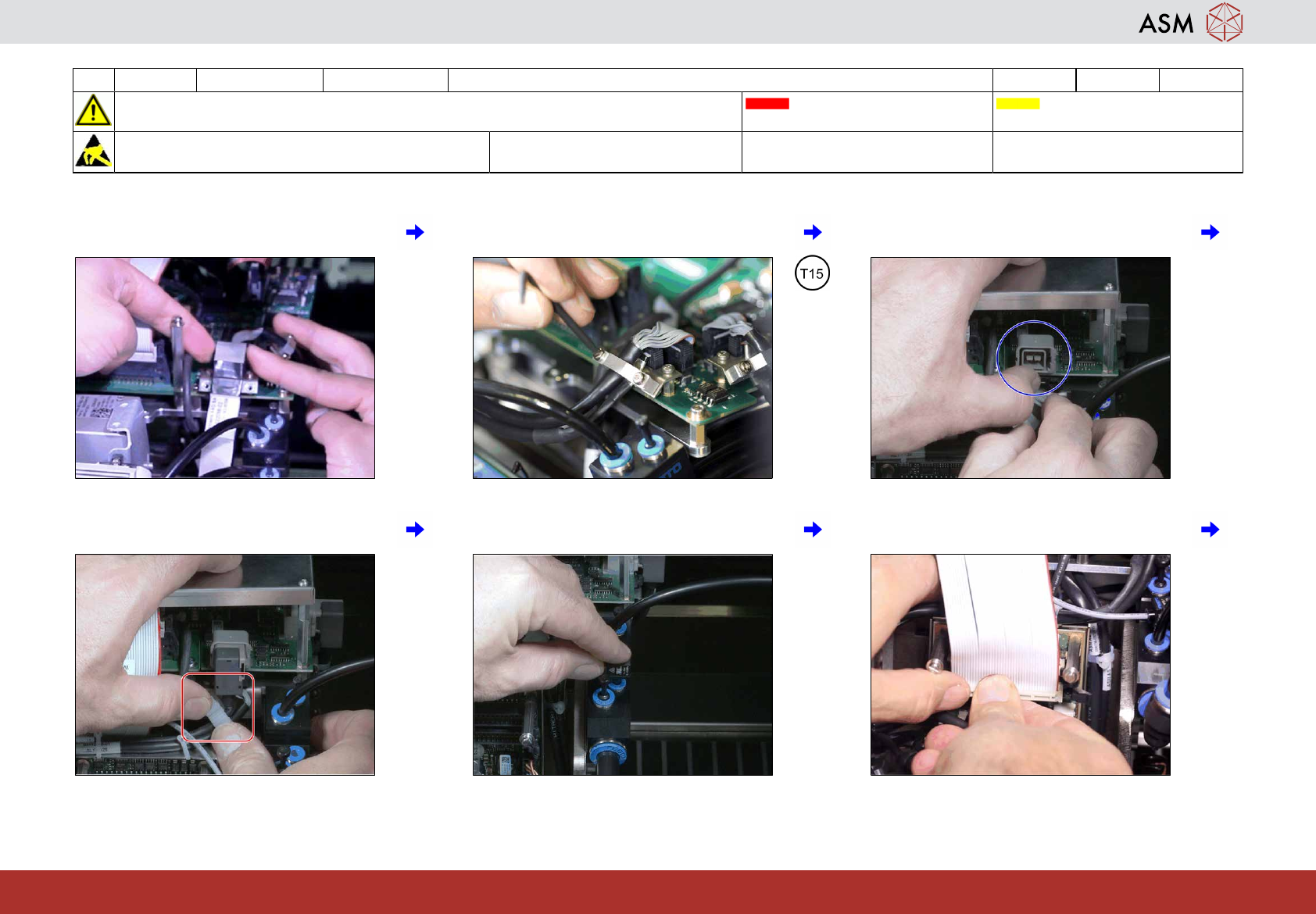 4 Disconnect both ribbon cables. 5 Loosen the screws holding the strain relief