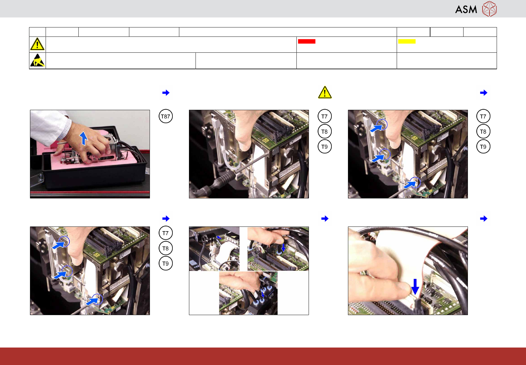22 Fasten all screws with a torque of 2.7Nm. 23 Connect the 3 air hoses to the segment. 24 Connect the ribbon cables to the segment.