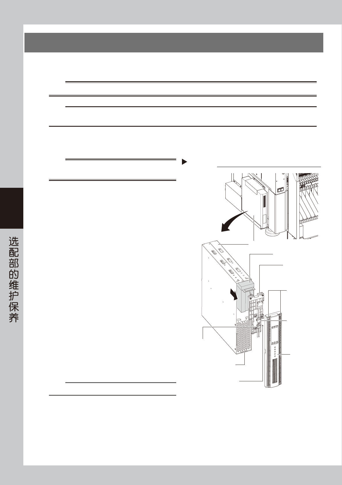 4-4 4 2. UPS 蓄电池的更换 (3 年 ) 蓄电池有一定的使用寿命。根据周围温度等使用环境不同,使用寿命会有所不同,但一般建议 3 年左右最好更换 1 次蓄电池 (KGA-M6566-30X)。下面,介绍更换 UPS 内置蓄电池的方法。 w 警告 更换蓄电池,必须由有电工操作经验以及专业知识的人员进行。 c 注意 UPS 使用的蓄电池会自然放电。若购买备用蓄电池, 为避免长时间存放, 建议最早可提前在预计更换的 1 〜…