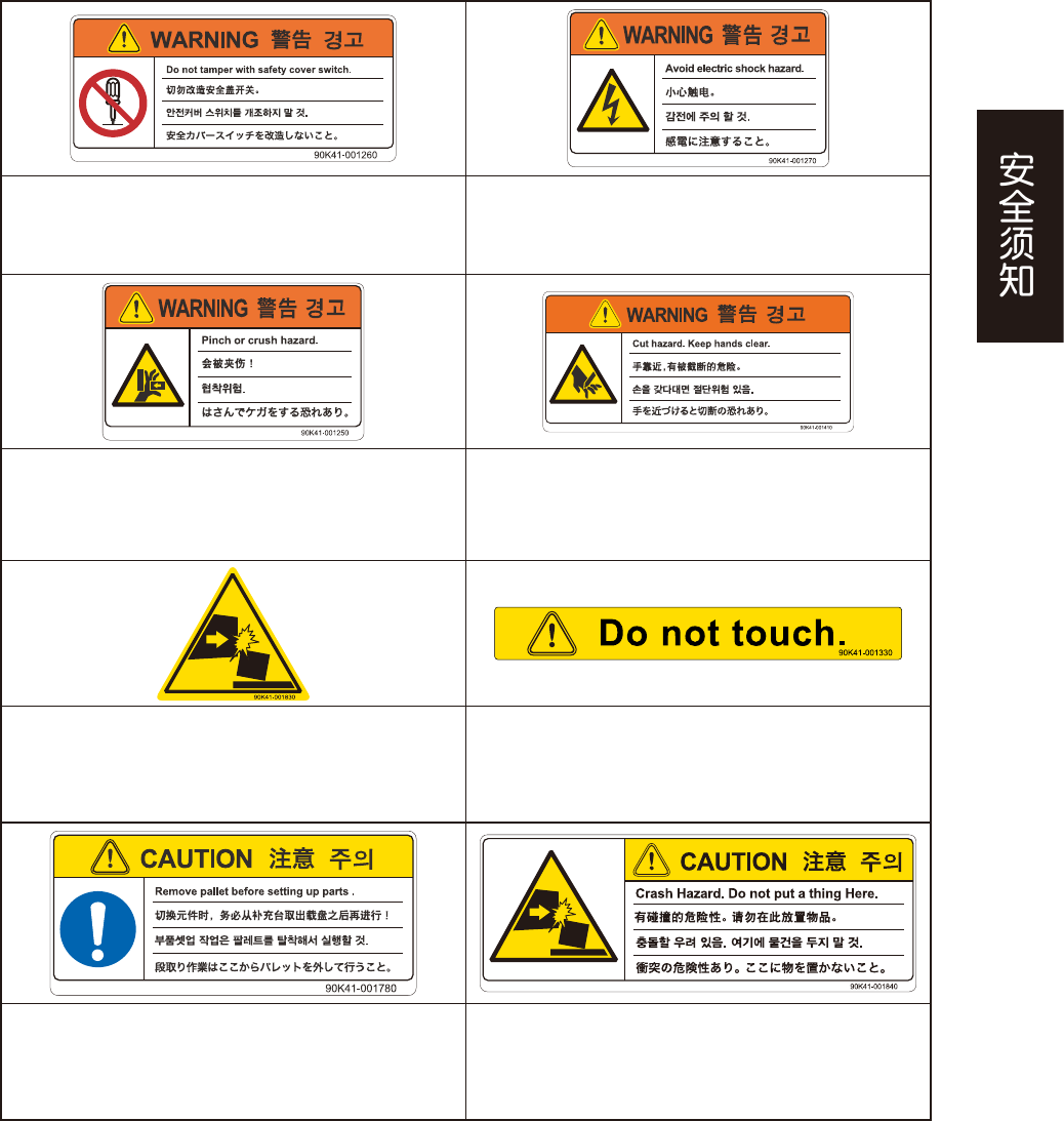 为了确保工作人员的安全,必须在严格遵守各国的安全法规与实施要则的前提下,安装本设备 ( 包括外部供料装置 )。