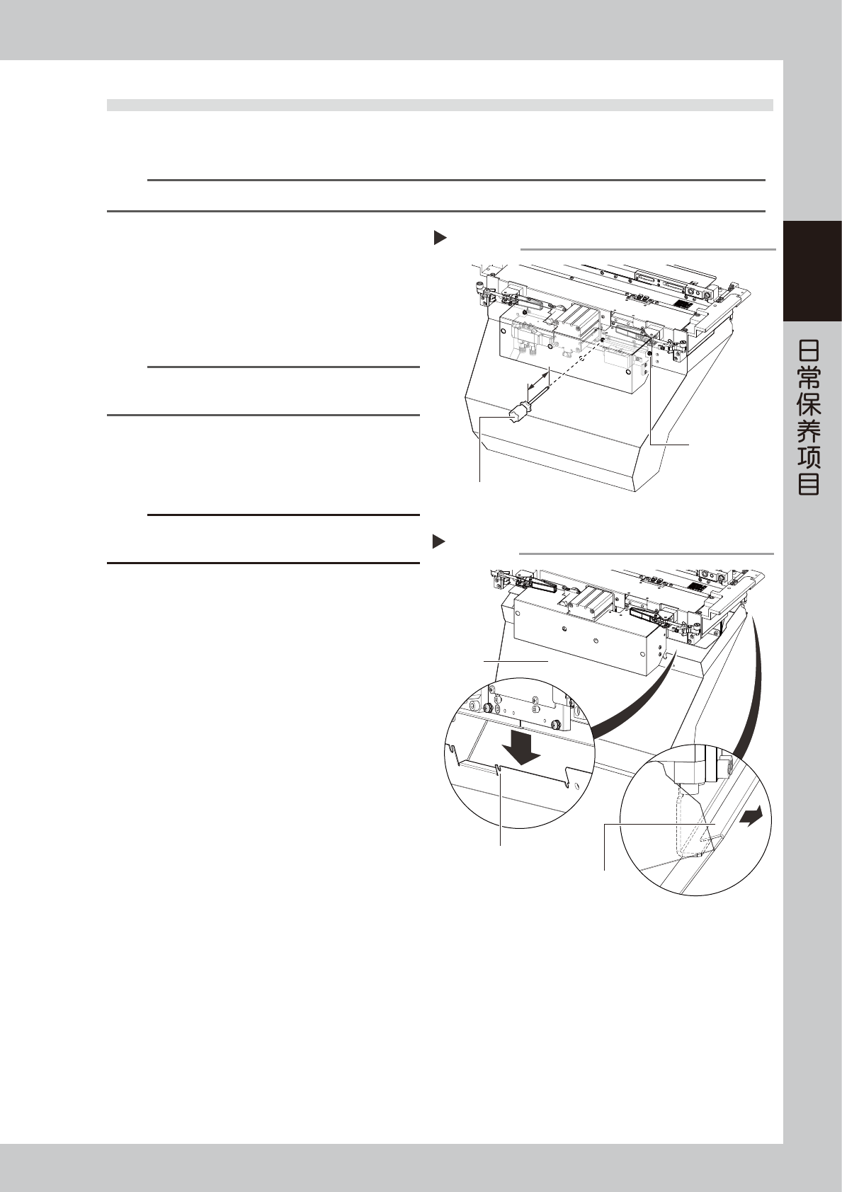 本保养手册中,有指示拆下一次性换料车的情况。只拆下一次性换料车仍然不便操作时,可以根据需要拆卸切带机部的排带通道。