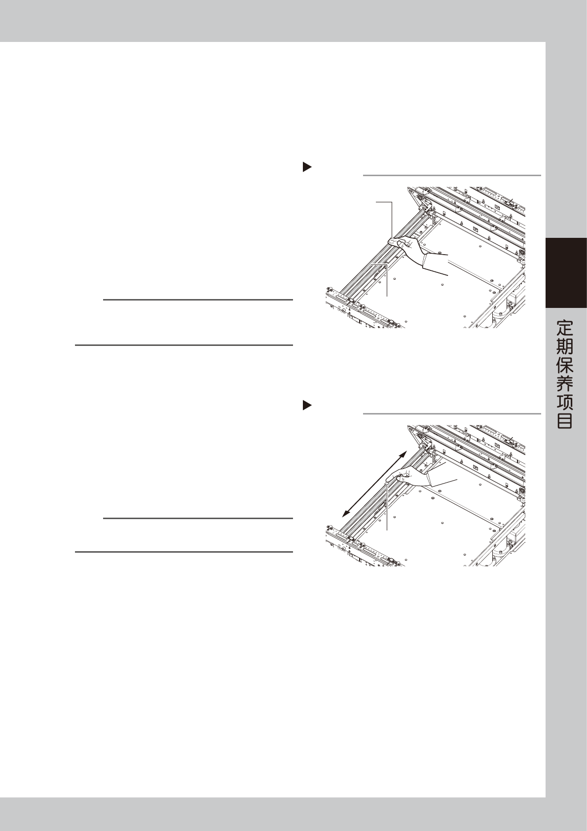 3-56 3 6 清洁传送带导轨部与带轮。 1. 用吸尘工具 ( 选购件 ) 清除传送带导轨与传感 器等部位粘附的传送带磨损粉。 2. 带轮表面若有传送带的磨损粉变黑固着时,可 用塑料刮片等除去。 3. 若用吸尘工具无法完全清除传送带导轨部粘附 的磨损粉时,可用塑料软刷等清除。 c 注意 刮片与软刷请使用塑料制品,以免带轮与传送带导轨被划伤。 c 注意 除脏污特别严重之外,请勿使用溶剂 (IPA 等 )。 使用时,务必小心擦拭,注意不要…