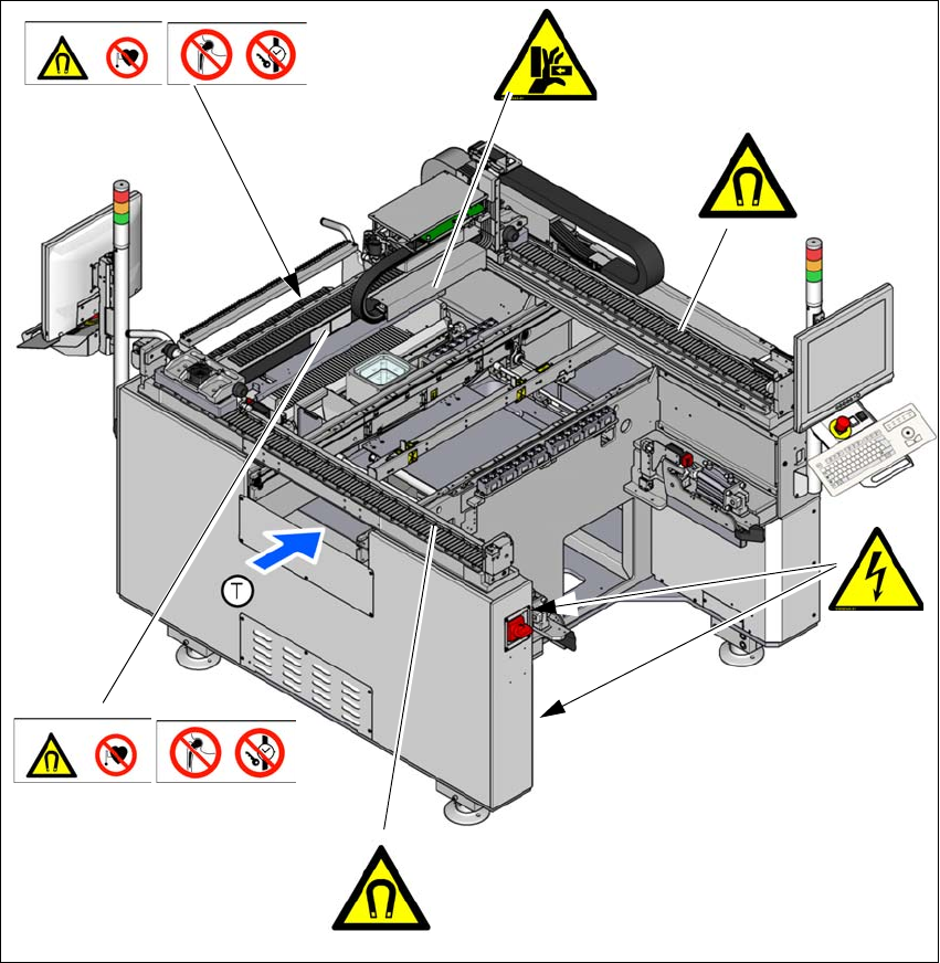 Fig. 2.2 - 5 Warning labels in the machine - part 1
