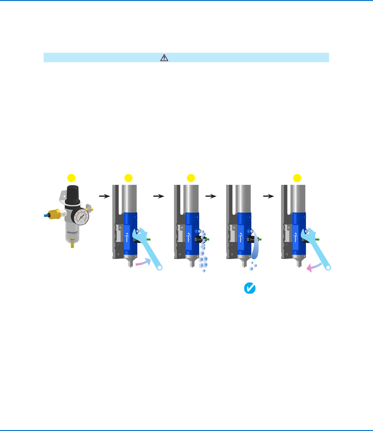 3. 混入エアー(気泡)がなくなるまで、ブリードバルブから液剤を漏出させます。