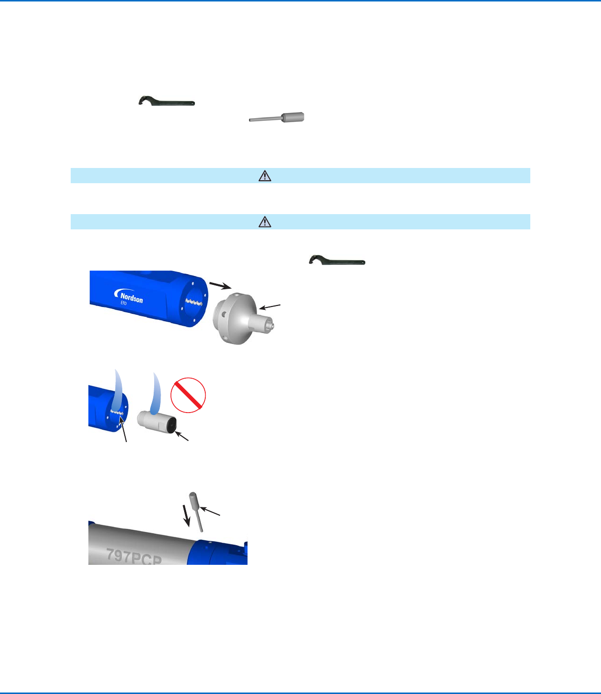 1. フ ッ ク ス パ ナ を 使 用 し て 、吐 出 口 ア ダ プ タ ー を 取 り 外 し ま す 。