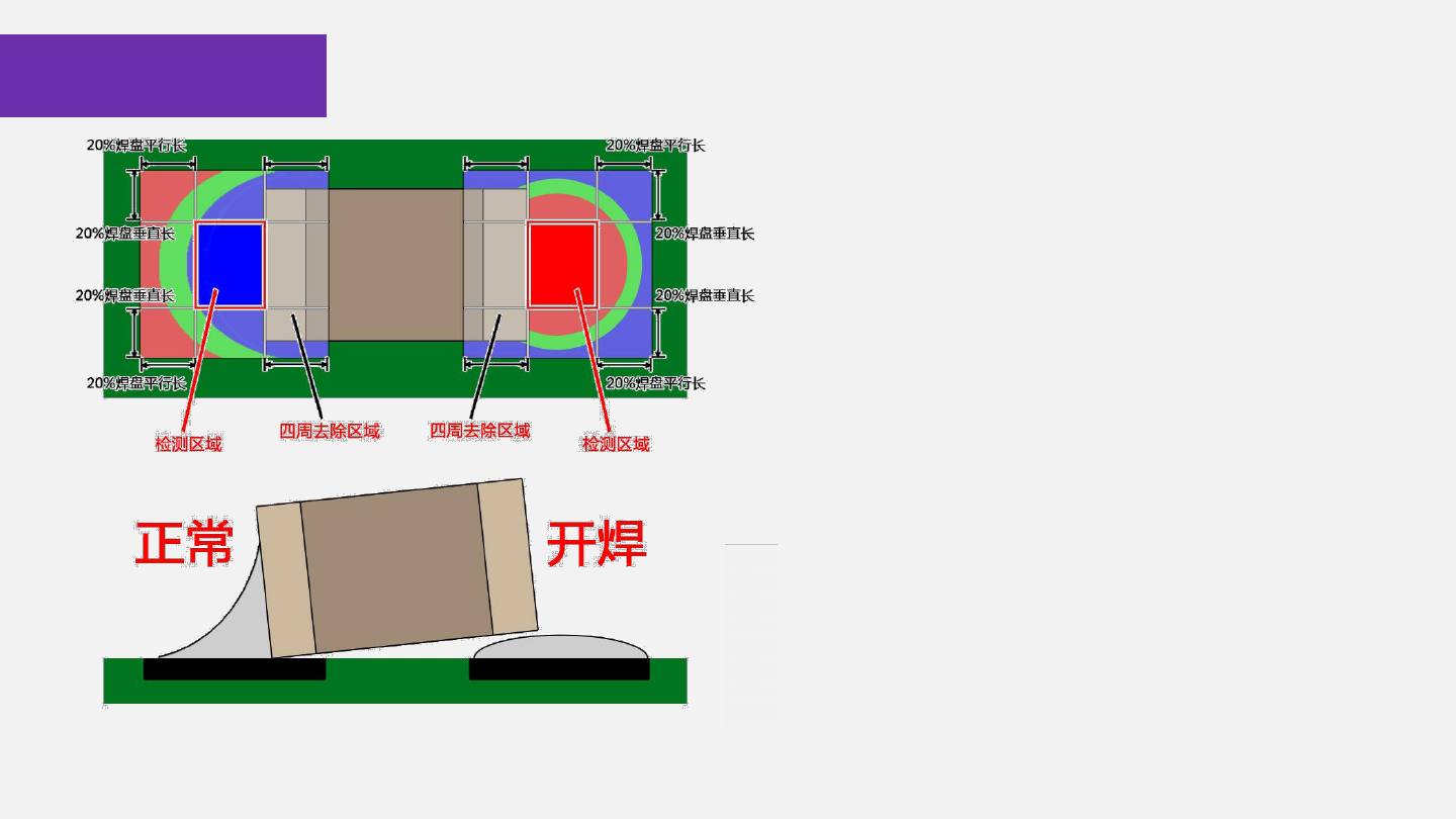 ②焊盘中央:检测区域为上锡正常时焊