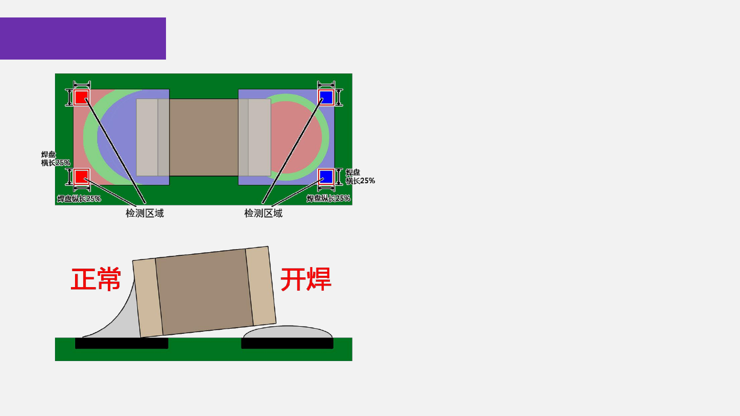 ④焊盘外端两角:检测区域为上锡正常